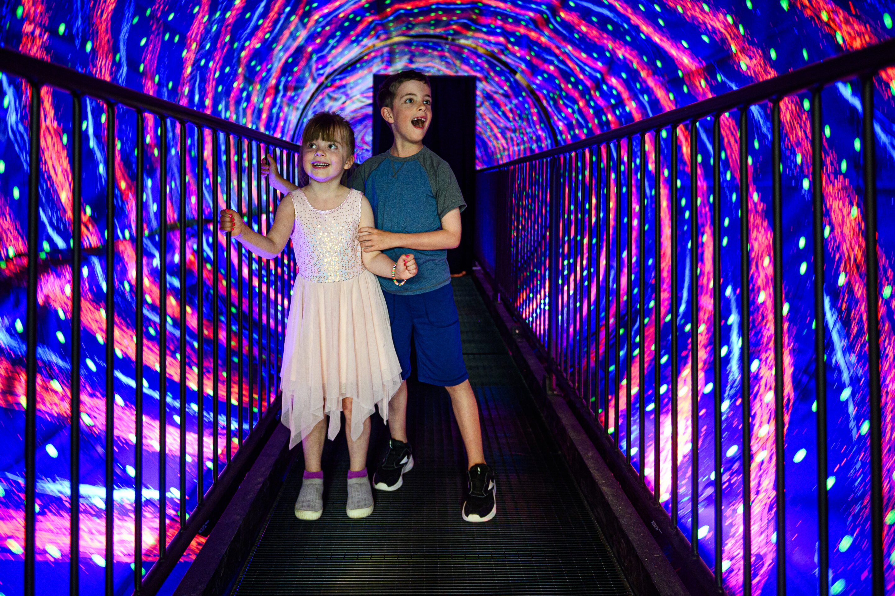 Step into a world of colour, light, and endless possibilities. KALEIDOSCOPE is an interactive, immersive experience that invites you to explore a life-sized kaleidoscope, a swirling vortex, and watch yourself transform on a kaleidoscope TV. Unleash your creativity by designing your own unique kaleidoscope patterns, and lose yourself in the mesmerizing Mirror Tower. Perfect for sharing with friends, this exhibition is a playful and captivating journey where every twist and turn brings a new visual adventure!