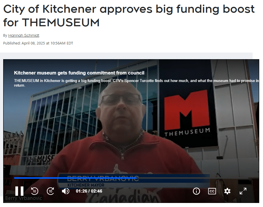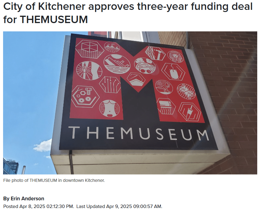 KITCHENER, ON | APRIL 8, 2025 — THEMUSEUM is proud to announce that the City of Kitchener has committed $300,000 in funding annually for three years, reinforcing the ongoing support for local arts, culture and innovation. This investment underscores the vital role THEMUSEUM plays in the community and enhances its capacity to deliver high-quality exhibits and cultural programming that contributes to the region’s growth and vibrancy.
